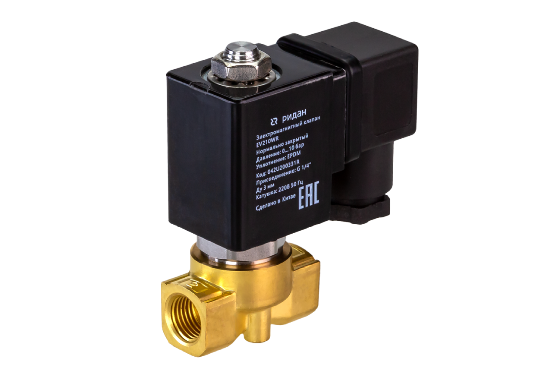 Ридан 042U200302R — Клапан электромагнитный EV210WR, G 1/4, Ду 3 мм, EPDM, НЗ, 0-8 бар, 24В постоянный ток