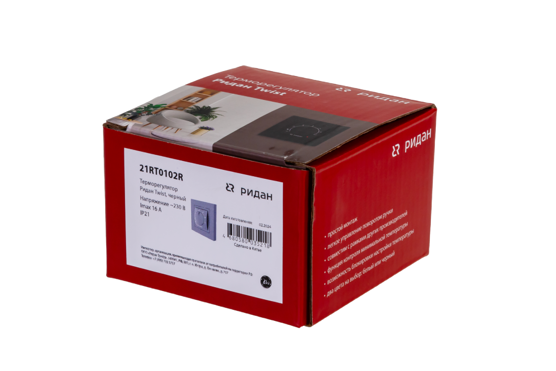 Ridan 21RT1074R — Розничный комплект для теплого пола: нагревательный мат Ridan TF-200 0,5 м² с терморегулятором Ridan Twist (черный)