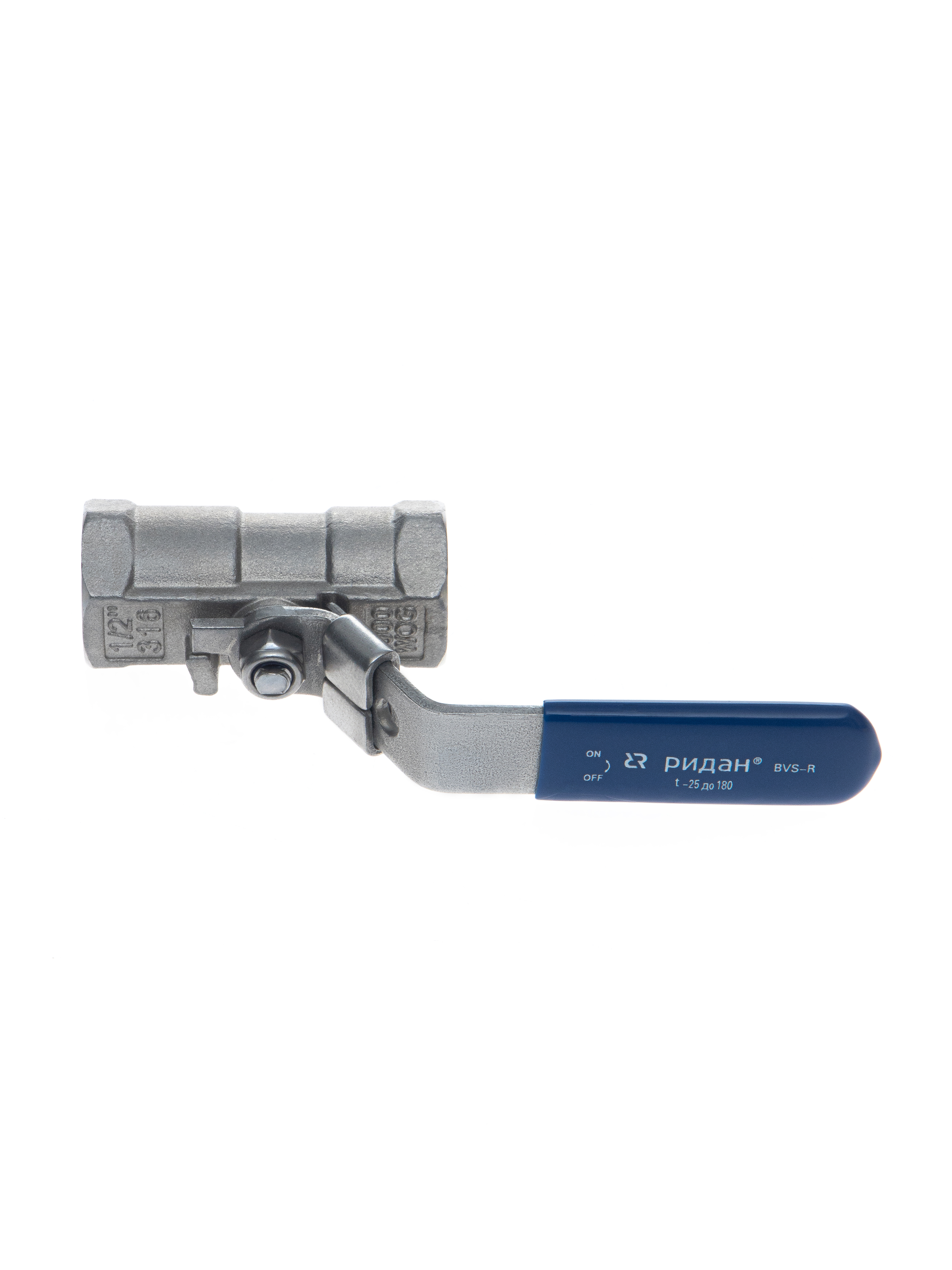 Ридан BVS-R 082X4602R — Шаровый кран резьбовой DN15 PN63, с рукояткой, корпус — коррозионностойкая сталь, шар — коррозионностойкая сталь AISI316; уплотнение по шару R-PTFE (15% C)